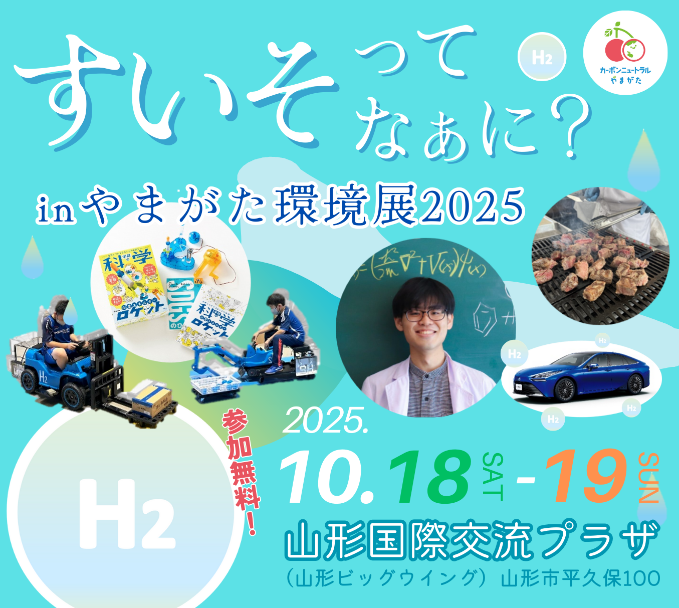 水素エネルギーについて、遊んで、食べて、体験しながら楽しく学べるイベントを「やまがた環境展2025」会場にて開催します。