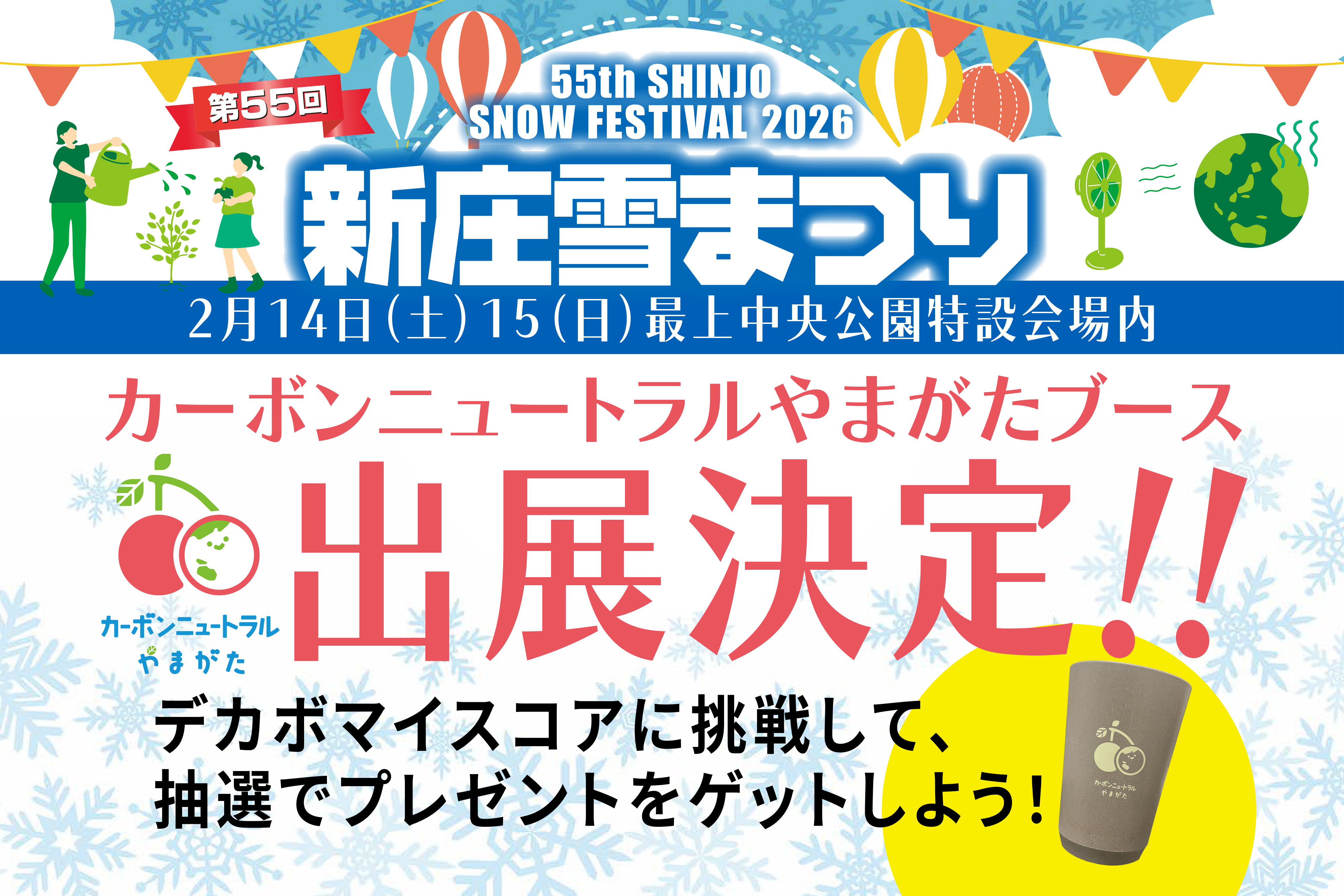 2月14日(土曜日)~15日(日曜日)開催の第55回新庄雪まつりで、カーボンニュートラルやまがたをPR⛄